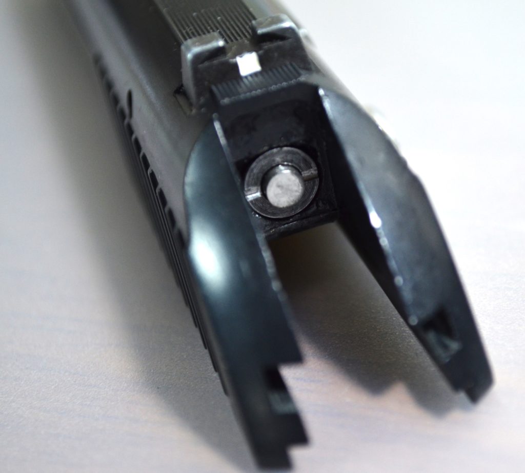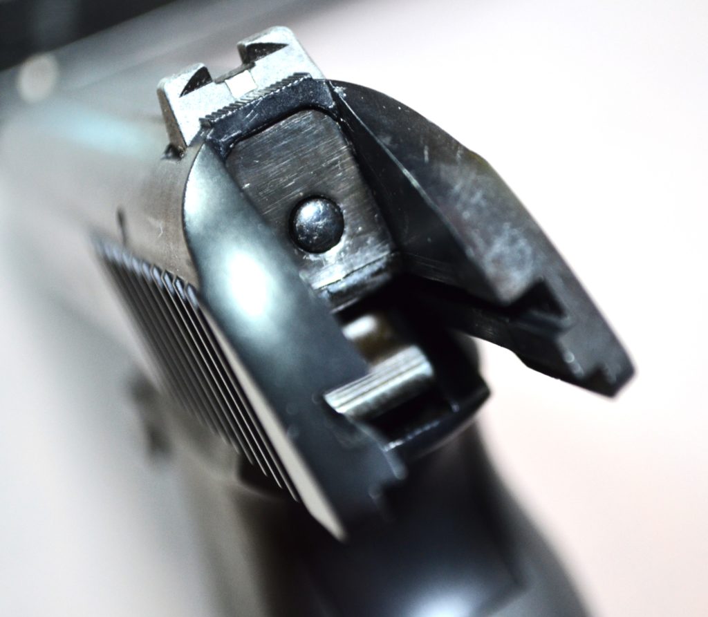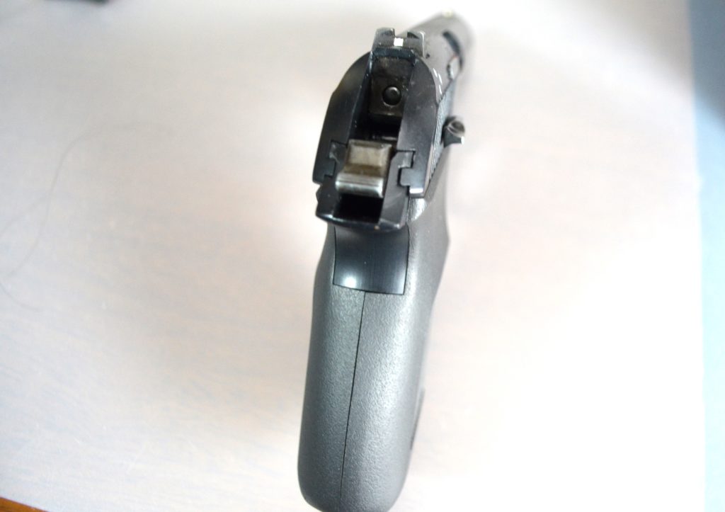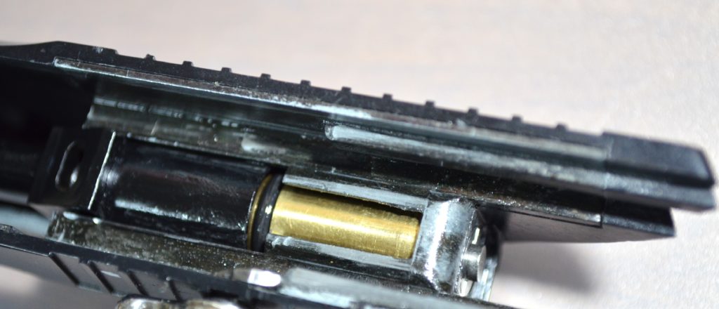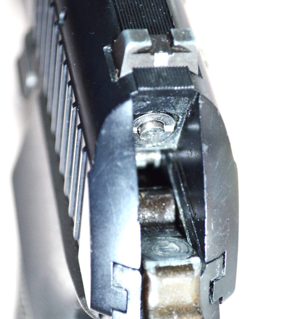 ノーマルの状態だとスライド本体、スクリューの上あたりをハンマーが叩きます。