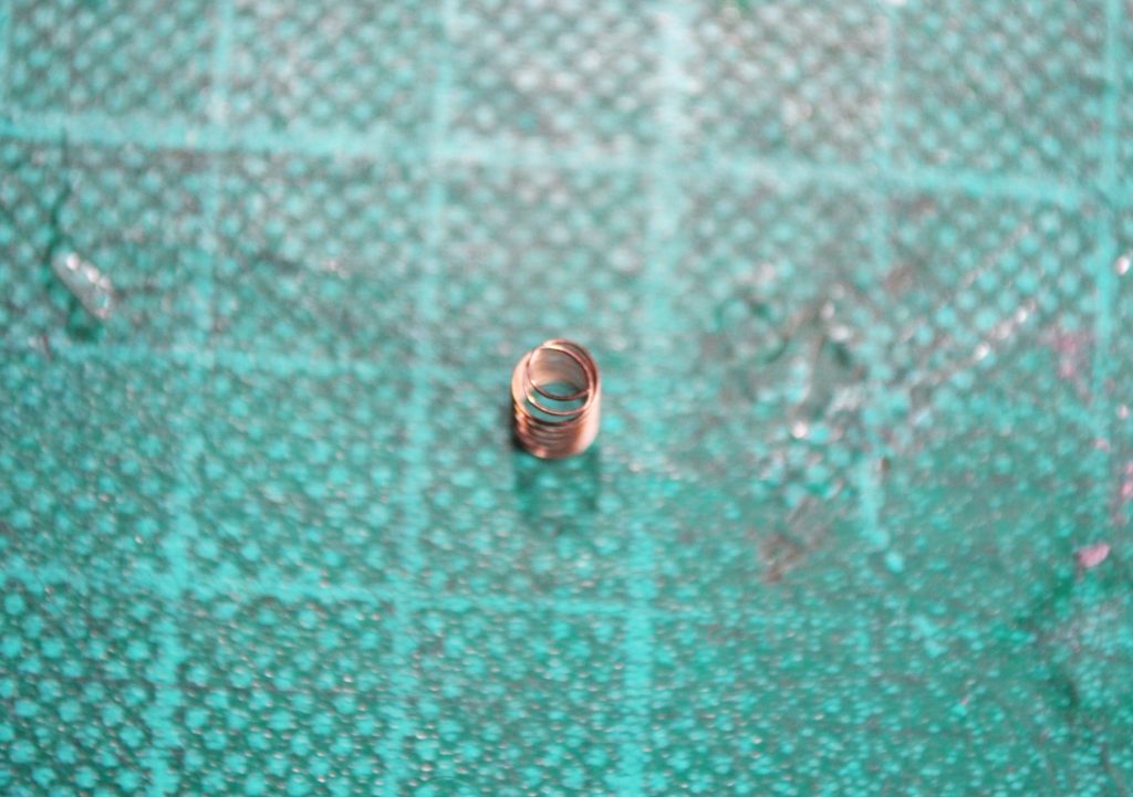 ①4φの丸棒の片方を2∼2.4φ程度に加工。長さは8mm前後